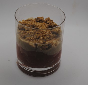 Peel, core, and slice 2 red apples into chunks and 1/3 cup of water. Heat on low heat until the fruit softens – keep on eye on the water evel, mash it up with a fork. Add a pinch of Sweetener to taste – if you use a sweet apple like a Delicious or Gala Apples, I find it is sweet enough. Evenly distribute into 2 single serve pots or dessert glasses and place in the fridge until cooled – do this the night before if possible. Or cheat and use a puree cups, available at the supermarkets in the tinned fruit aisle. Top with ½ small tub (80g) of Vanilla Greek Yoghurt mixed with ½ tsp Ground Cinnamon. Sprinkle your favourite Granola on top – I like Natural Valley Oats & Honey muesli bars (they come in twin packs – one bar for each serve) and crush one per serve to scatter on top.